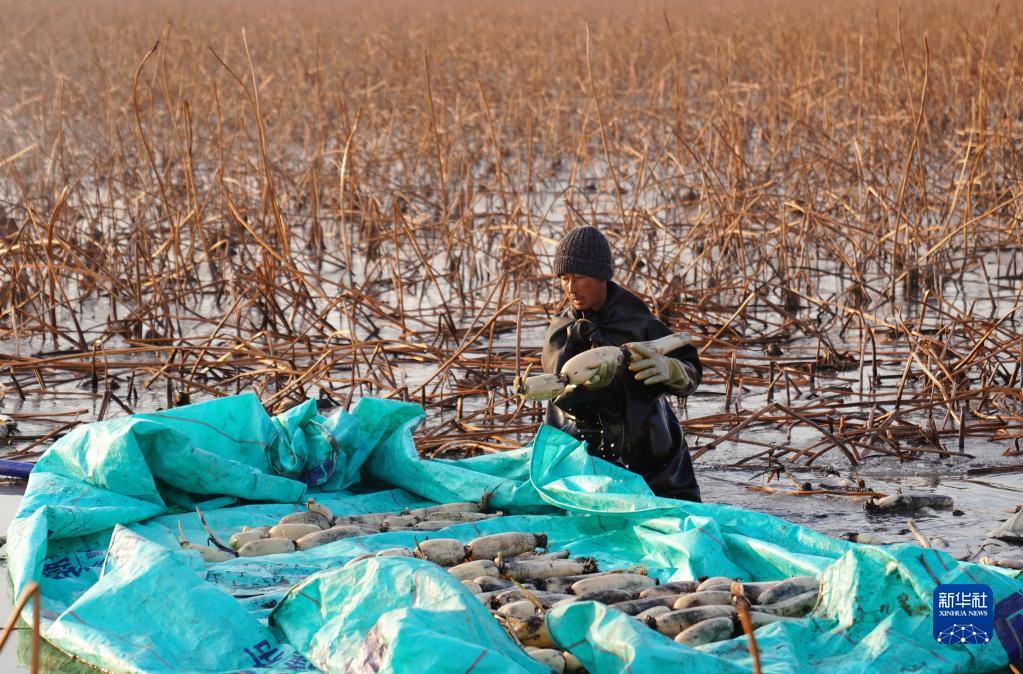 寒冬時(shí)節,在河北省邢臺市新河縣新河鎮白穴口村蓮藕種植基地,農民們忙著(zhù)采挖蓮藕供應兩節市場(chǎng)。