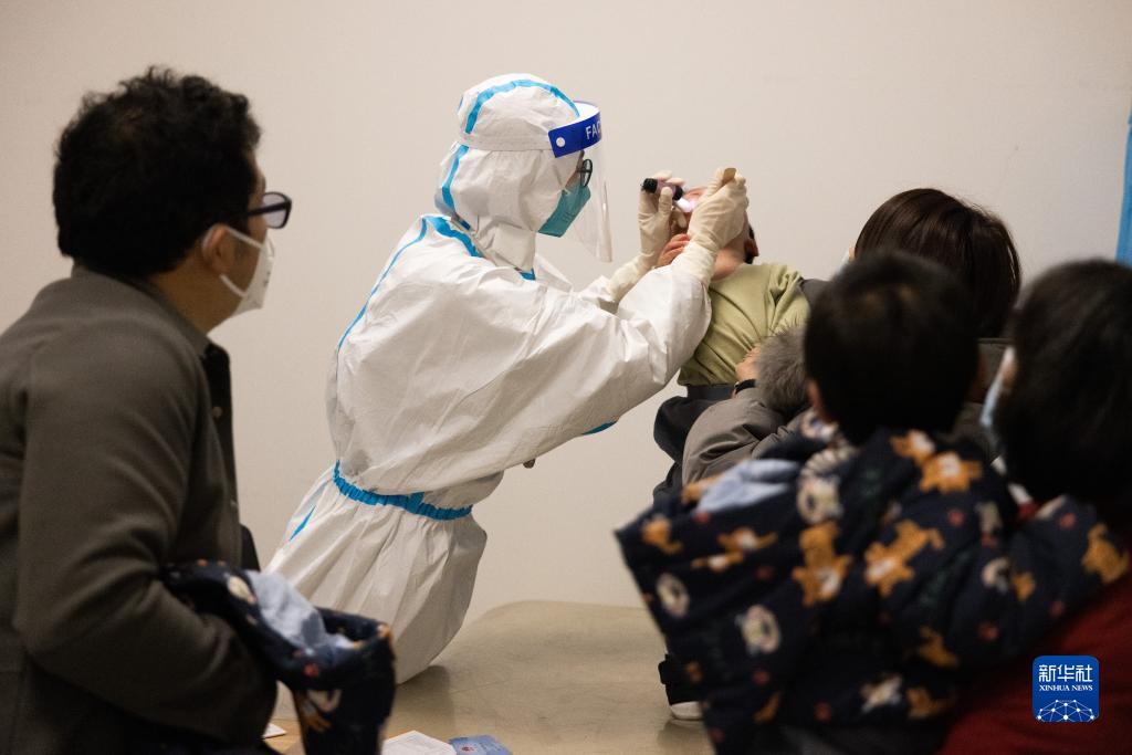 12月27日,在上海交通大學(xué)醫學(xué)院附屬新華醫院兒科發(fā)熱門(mén)診,醫生陳旭婷在檢查患兒狀況。