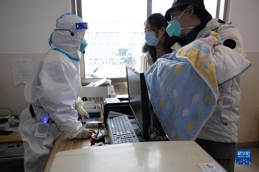 12月27日,在上海交通大學(xué)醫學(xué)院附屬新華醫院兒科發(fā)熱門(mén)診預檢臺前,護士回答家長(cháng)提問(wèn)。