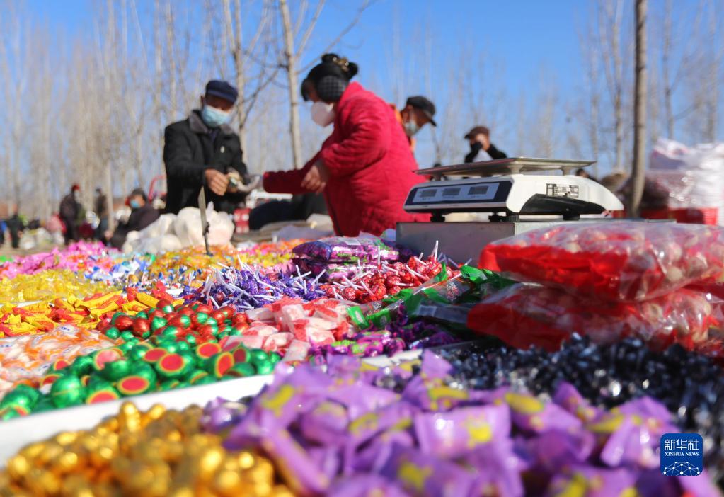 12月28日,在山東省臨沂市沂南縣岸堤鎮,人們在大集上購買(mǎi)糖果。