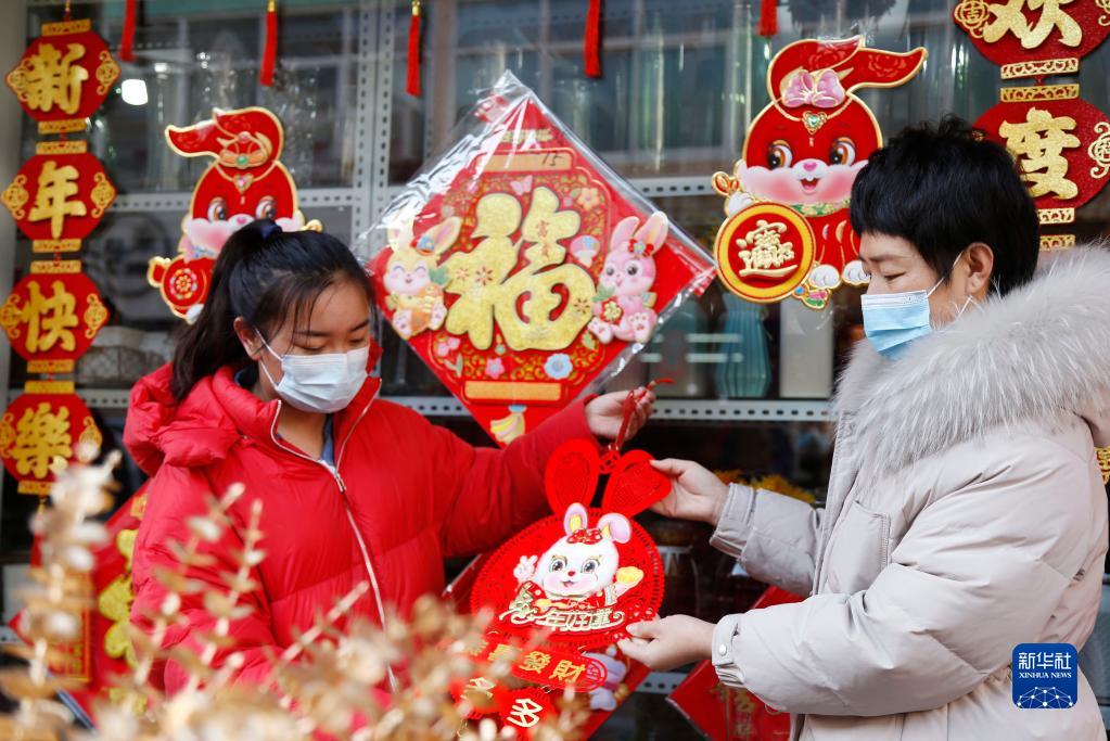 元旦、春節臨近,人們紛紛選購花卉、瓜果、春聯(lián)等年貨,迎接佳節。