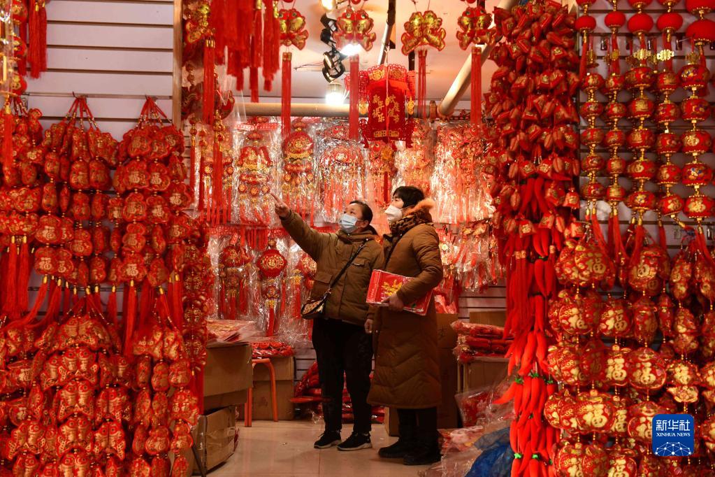 12月29日,人們在河北省石家莊市一家年貨市場(chǎng)選購年貨。