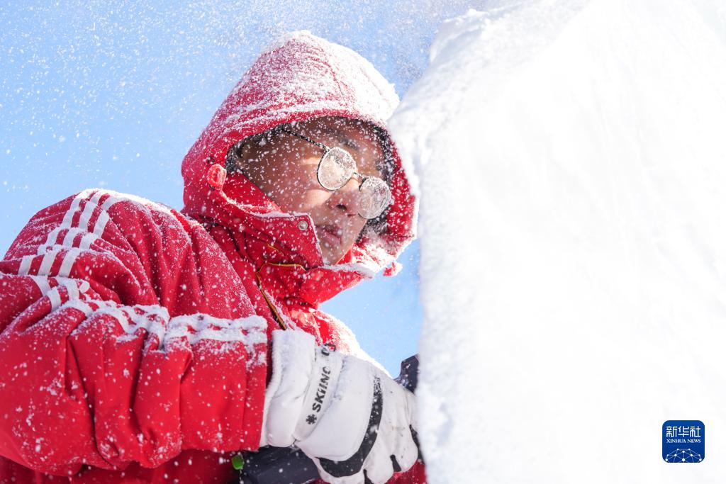 當日,在黑龍江省哈爾濱市,參加第17屆全國大學(xué)生冰雕藝術(shù)設計創(chuàng )作大賽的冰雕選手在嚴寒中進(jìn)行藝術(shù)創(chuàng )作。