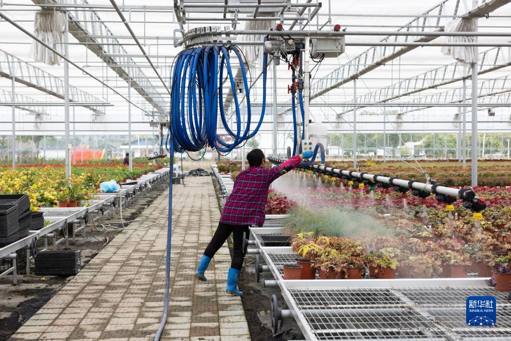 在上海浦東新區惠南鎮海沈村,村民在花卉基地里務(wù)工(12月7日攝)。