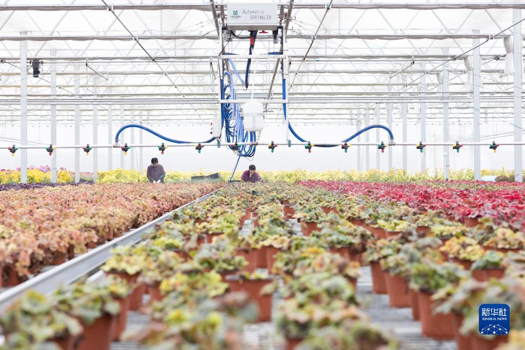 在上海浦東新區惠南鎮海沈村,村民在花卉基地里務(wù)工(12月7日攝)。