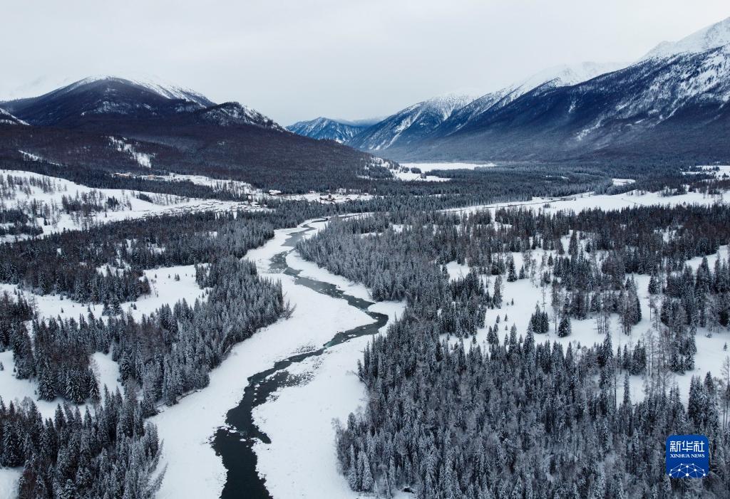 這是12月29日拍攝的喀納斯景區冬景(無(wú)人機照片)。