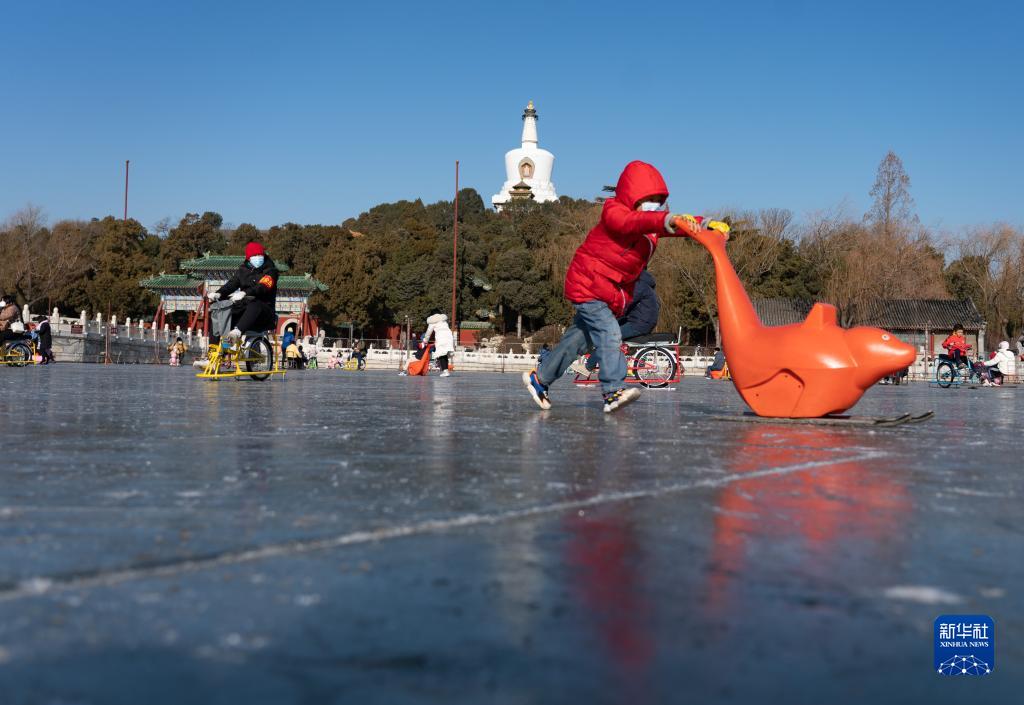 12月31日,小朋友在北京北海公園冰場(chǎng)玩耍。