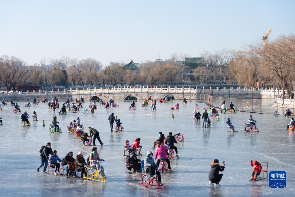 12月31日,游客們在北京北海公園冰場(chǎng)玩耍。