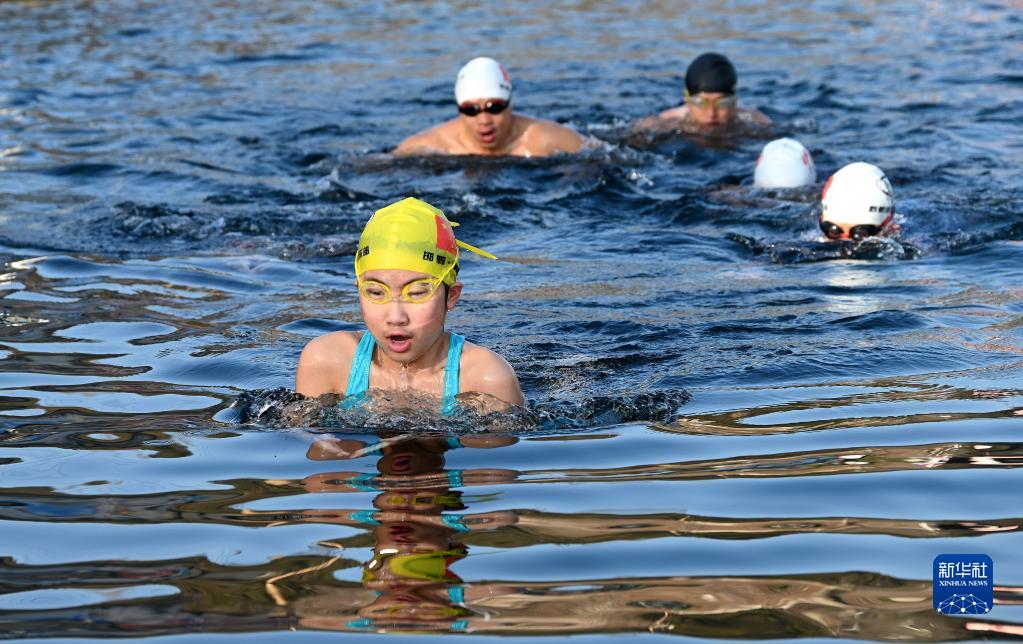 12月31日,邯鄲市峰峰礦區的冬泳愛(ài)好者在水中暢游。