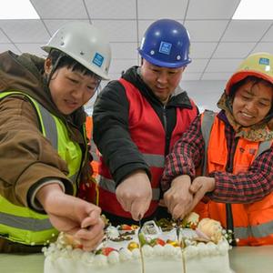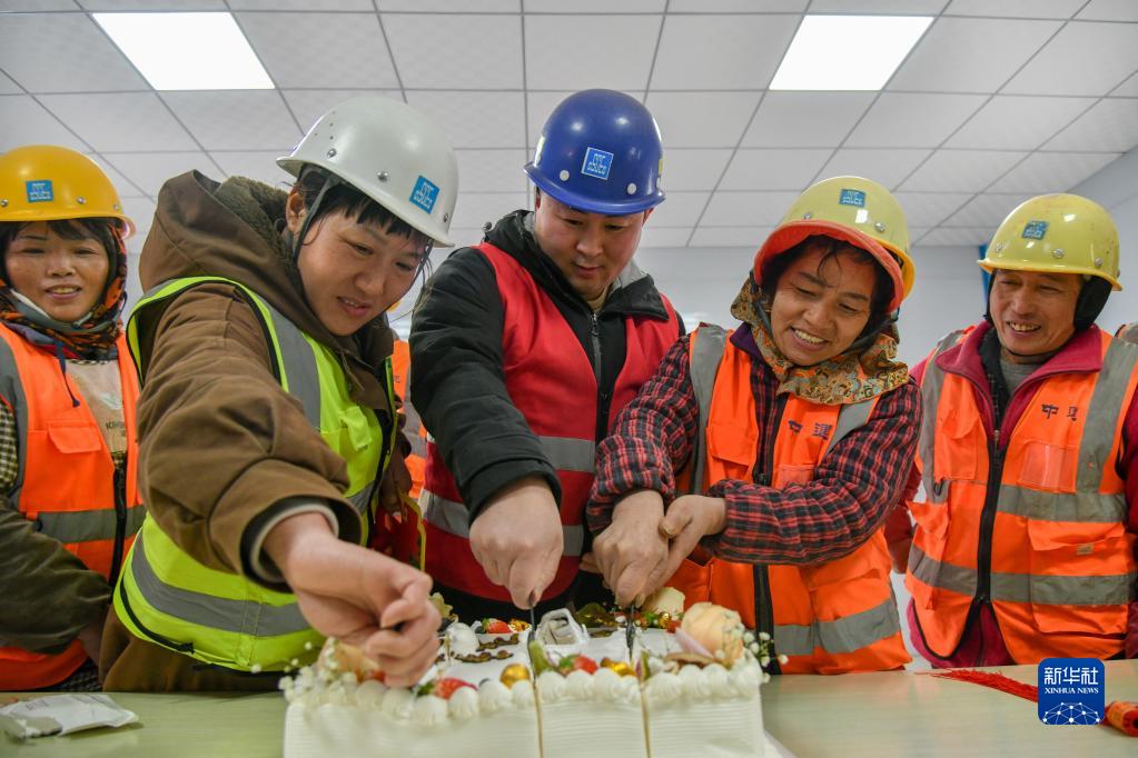 當日,在山東濟南唐冶醫院工程項目現場(chǎng),參與施工的中建三局集團有限公司為元旦假期堅守崗位的工友舉行集體生日會(huì ),共同迎接新年的到來(lái)。