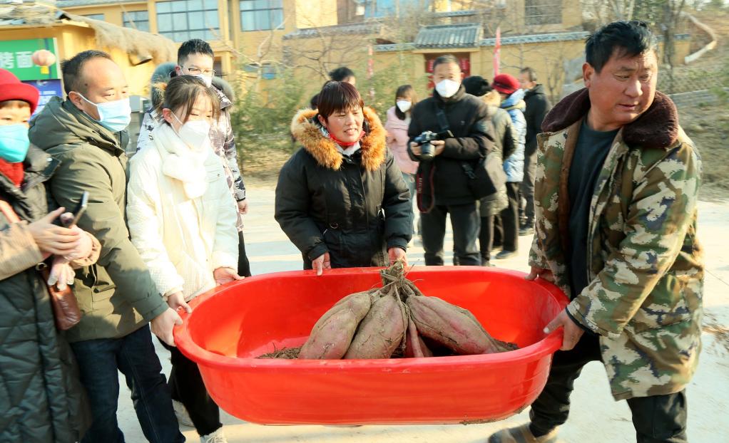 12月30日,在汝陽(yáng)紅薯擂臺賽上,工作人員搬運參賽紅薯。