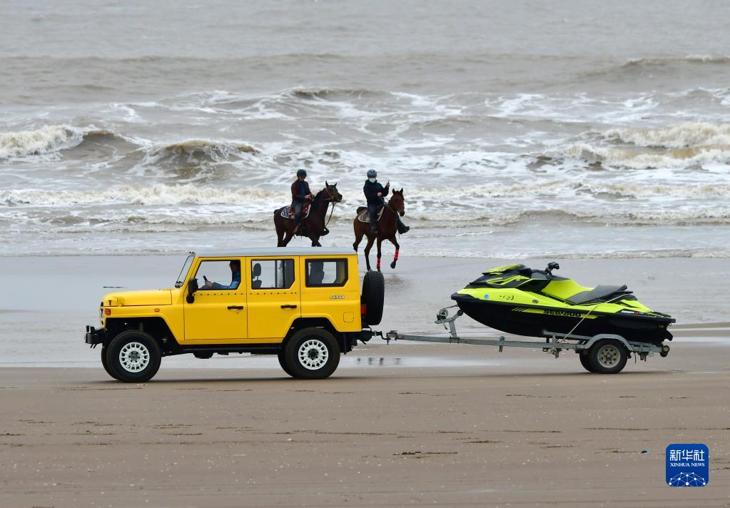 1月1日,馬術(shù)俱樂(lè )部成員在福建省福州市長(cháng)樂(lè )區南澳海灘體驗海騎樂(lè )趣。