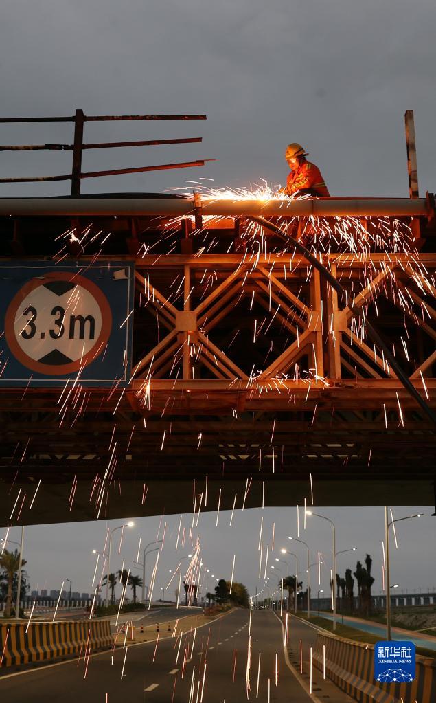 1月1日,在新建福(州)廈(門(mén))鐵路泉州灣跨海大橋施工現場(chǎng),建設者在作業(yè)。