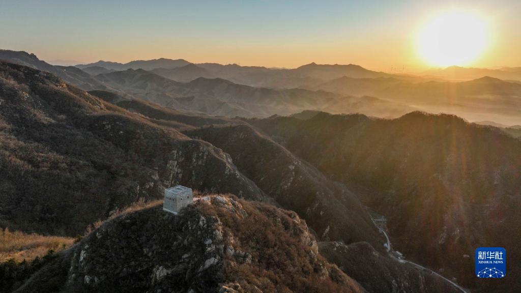 1月1日,晨光中的河北省遵化市境內的古長(cháng)城(無(wú)人機照片)。