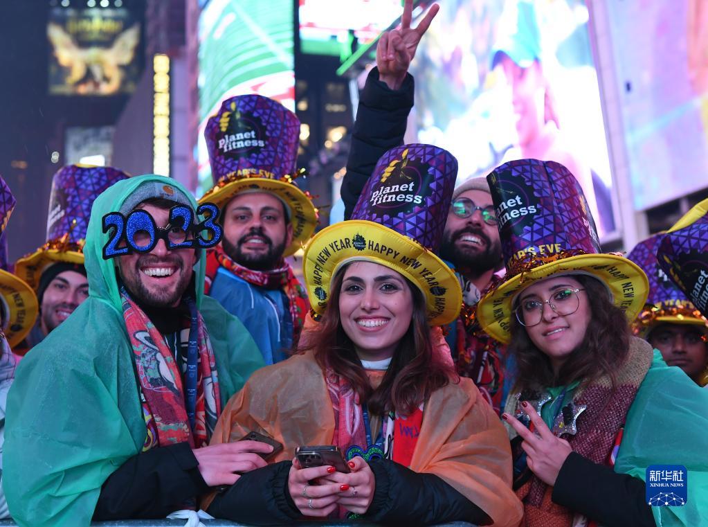 2022年12月31日,人們在美國紐約時(shí)報廣場(chǎng)參加跨年活動(dòng)。