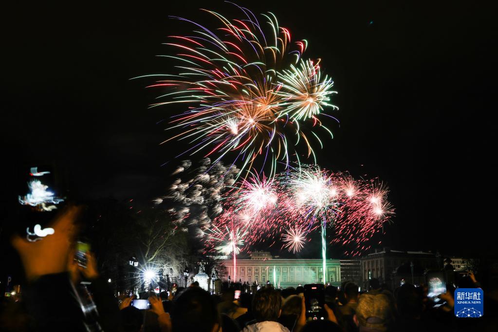 這是2023年1月1日在比利時(shí)布魯塞爾拍攝的新年煙花。