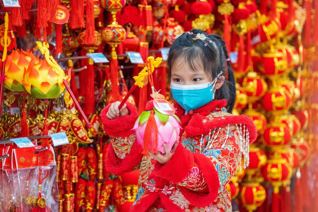 1月1日,一名小女孩在貴州省畢節市招商花園城商業(yè)區選購燈籠。