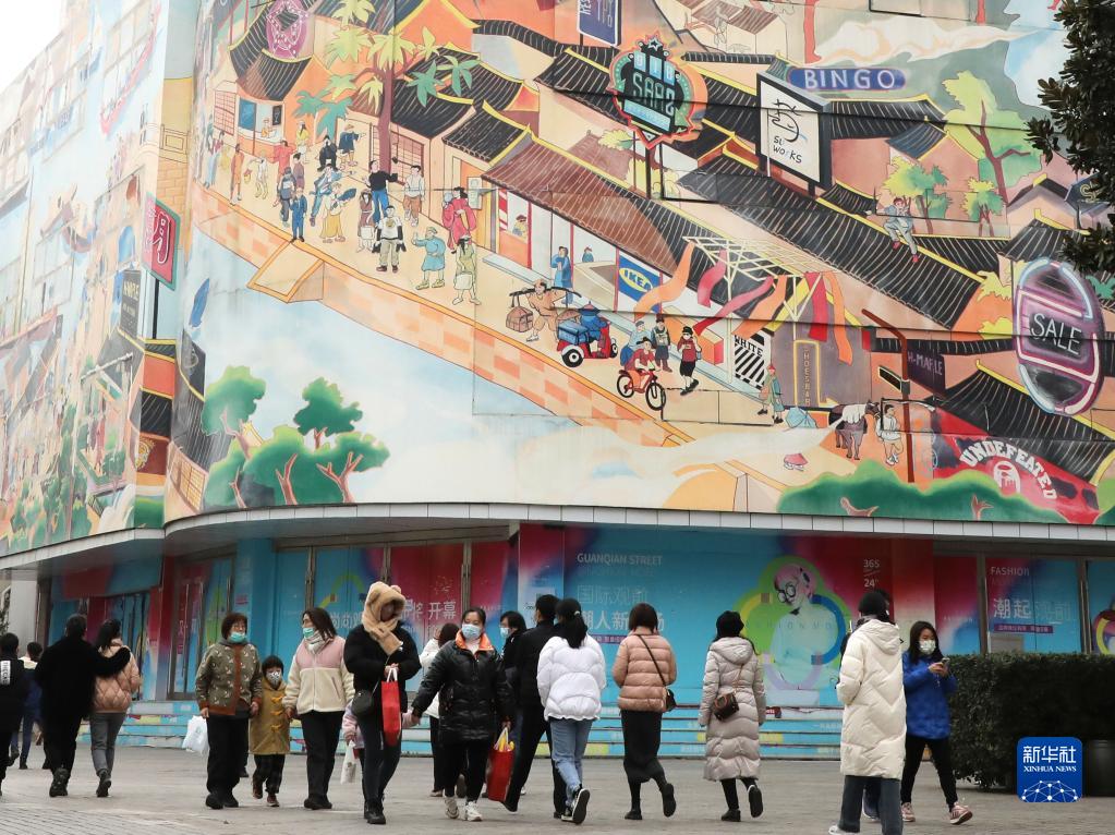 1月1日,人們在江蘇省蘇州市觀(guān)前商圈逛街購物。