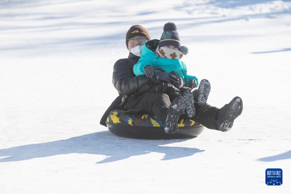 元旦假期,喜愛(ài)冰雪的人們來(lái)到冰雪娛樂(lè )場(chǎng)所游玩,感受冰雪運動(dòng)的快樂(lè )。