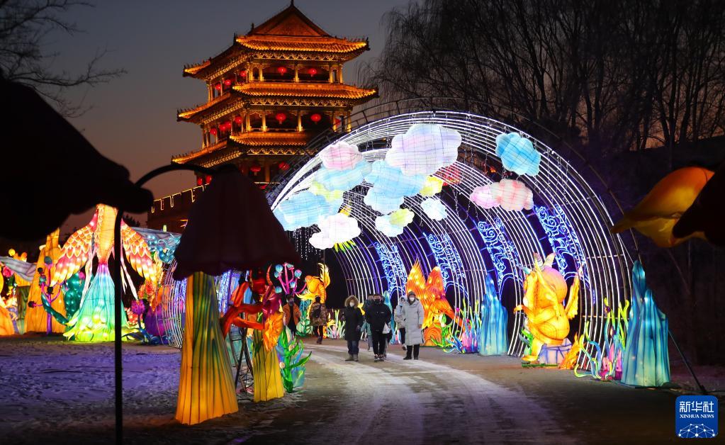 2022年12月30日,2023沈陽(yáng)國際冰雪節暨沈陽(yáng)迎春燈會(huì )在沈陽(yáng)關(guān)東影視城拉開(kāi)帷幕。本屆燈會(huì )制作各類(lèi)大型燈組70余組,占地2萬(wàn)余平方米,吸引眾多市民參觀(guān)游玩。