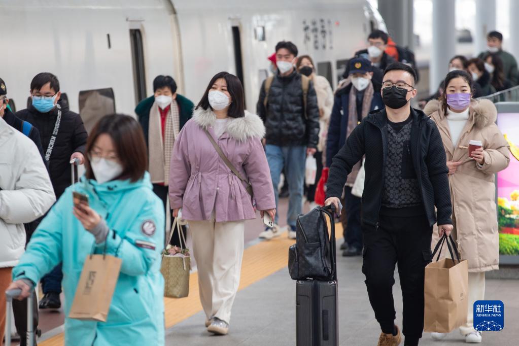 1月2日,旅客在南京火車(chē)站乘車(chē)。