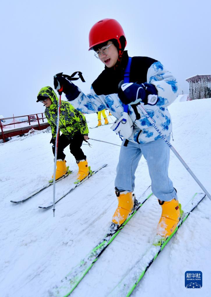 1月2日,游人在湖北省宣恩縣一滑雪場(chǎng)體驗滑雪。
