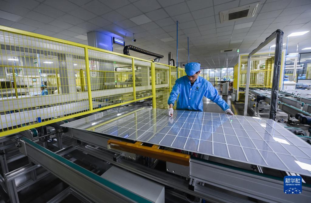 1月3日,工人在浙江格普光能科技有限公司的車(chē)間內生產(chǎn)太陽(yáng)能電池片、光伏組件等。