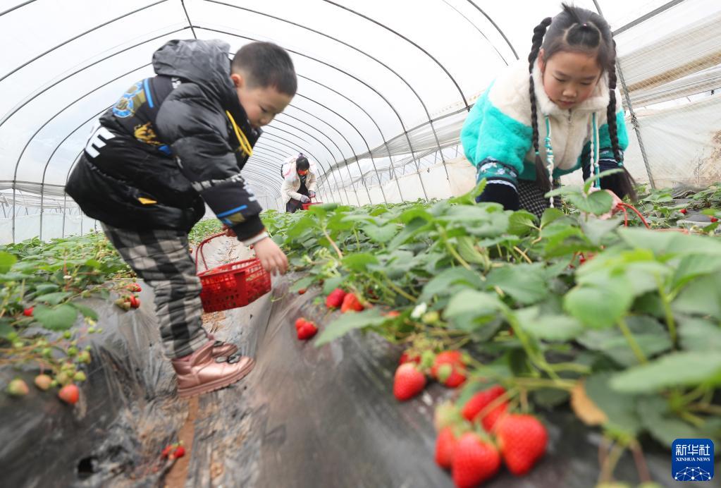 1月3日,人們在衡陽(yáng)市衡東縣吳集鎮秋波村草莓種植基地采摘草莓。