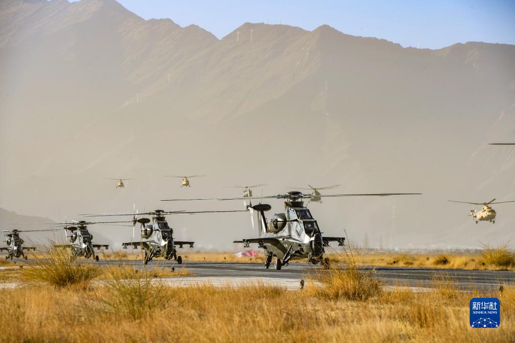 1月3日,在海拔3700米的拉薩某訓練場(chǎng),西藏軍區某旅各型直升機依次升空,向預定作戰地域機動(dòng)。