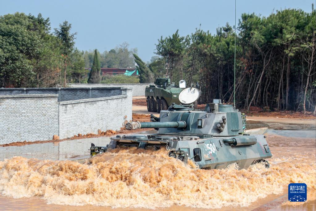 1月4日,陸軍第72集團軍某旅火力二連組織輪式裝甲裝備進(jìn)行涉水駕駛訓練。