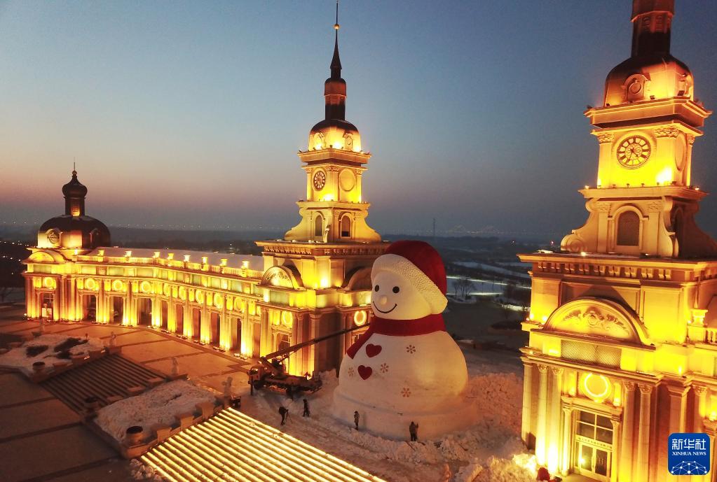哈爾濱“超治愈”大雪人“回歸”松花江畔