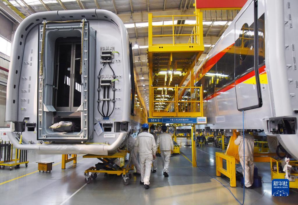 1月4日,總裝車(chē)間技術(shù)人員在“復興號”智能動(dòng)車(chē)組生產(chǎn)線(xiàn)上忙碌。
