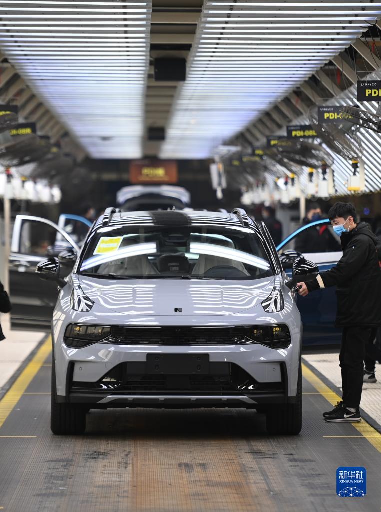 1月5日,工人在領(lǐng)克汽車(chē)浙江余姚工廠(chǎng)總裝車(chē)間進(jìn)行下線(xiàn)前的檢查工序。