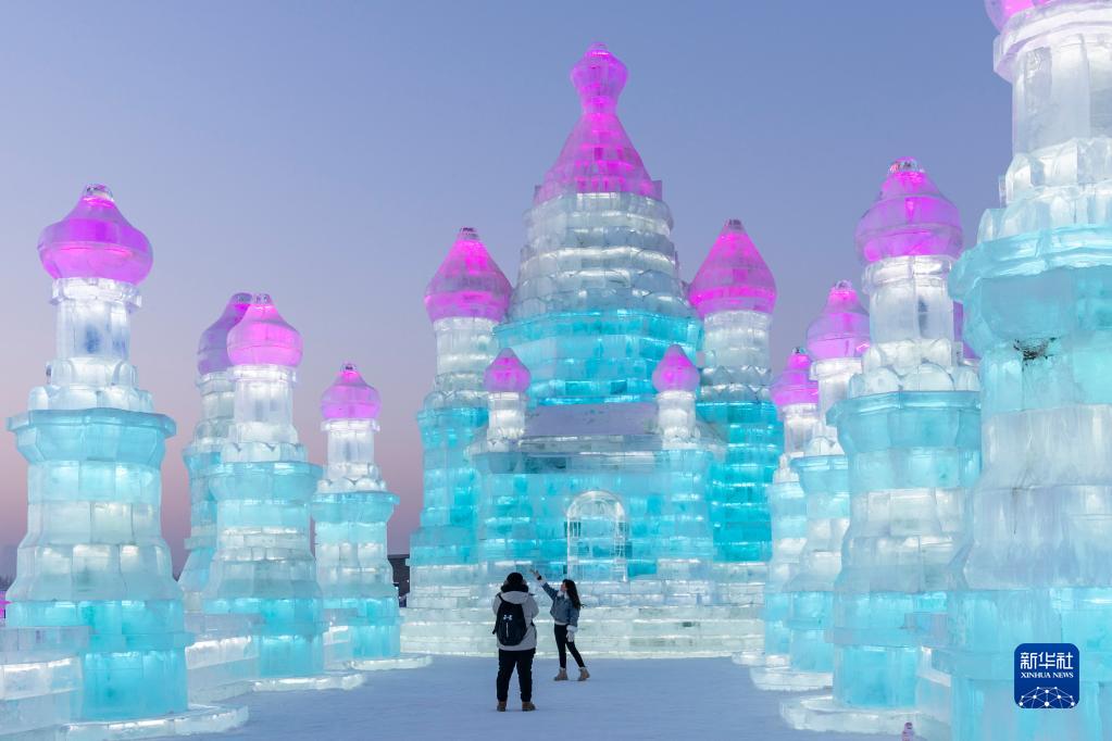 1月5日,游客在哈爾濱冰雪大世界園區游玩。