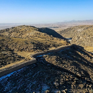 固陽(yáng)秦長(cháng)城局部(1月6日攝,無(wú)人機照片)。