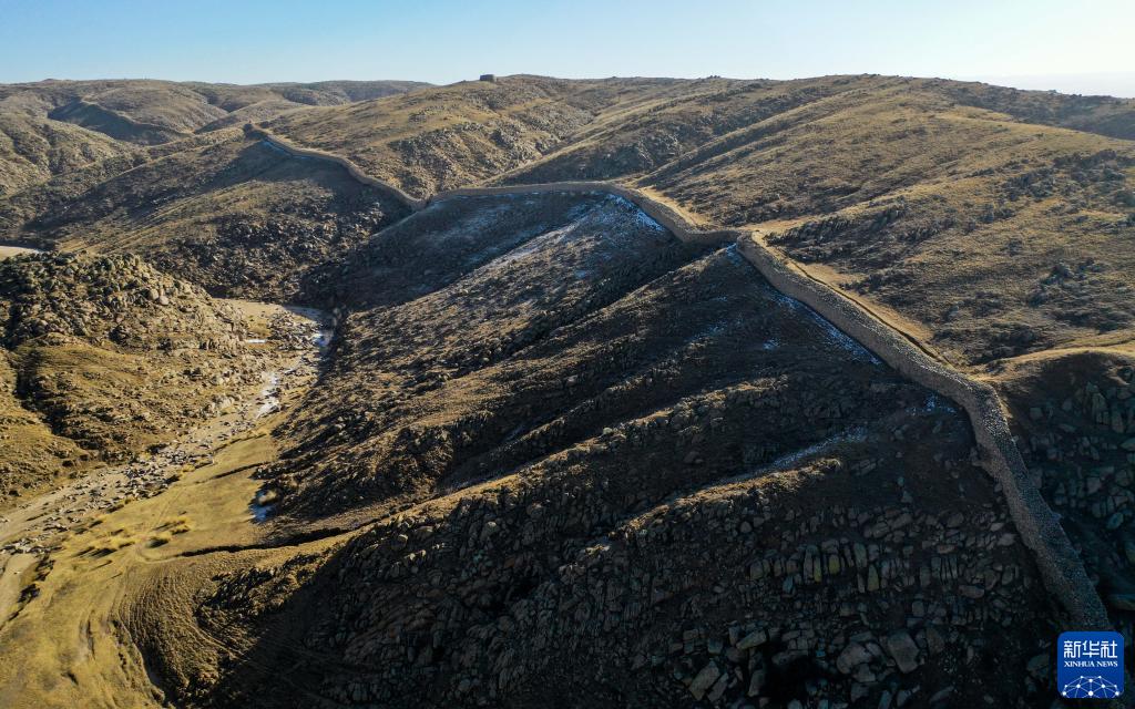 固陽(yáng)秦長(cháng)城局部(1月6日攝,無(wú)人機照片)。