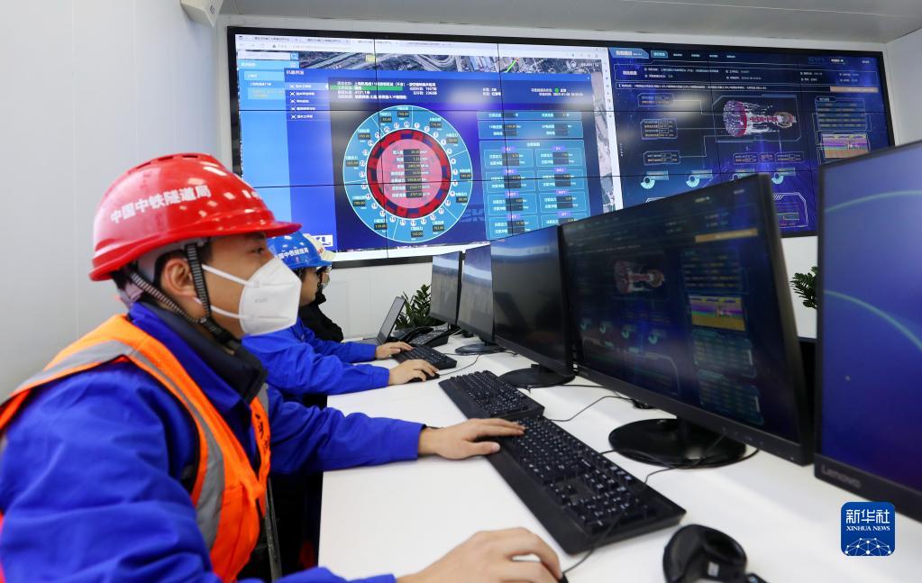 1月6日,在中鐵隧道局上海市域鐵路機場(chǎng)聯(lián)絡(luò )線(xiàn)11標項目施工現場(chǎng),技術(shù)人員在盾構及掘進(jìn)技術(shù)國家重點(diǎn)實(shí)驗室大數據平臺信息大屏前操作電腦。