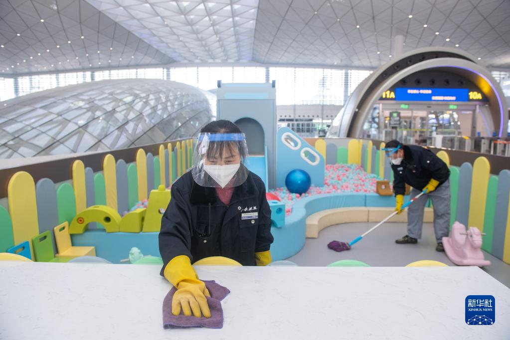 1月6日,杭州西站工作人員在清潔車(chē)站的兒童娛樂(lè )區。