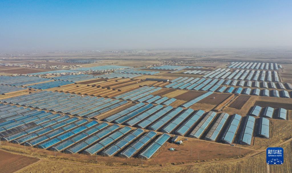 這是1月6日在達拉特旗樹(shù)林召鎮林原村拍攝的大棚(無(wú)人機照片)。
