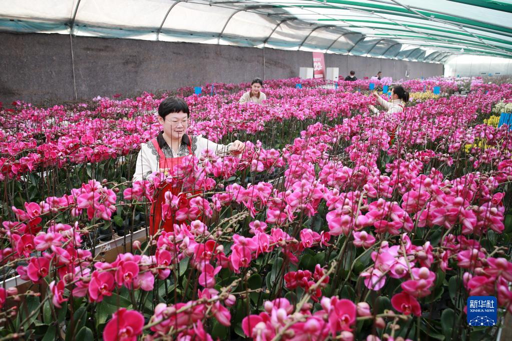 春節臨近,在安徽省淮北市烈山區華家湖社區蝴蝶蘭種植基地智能化溫室大棚內,10萬(wàn)余株各色蝴蝶蘭競相綻放。工作人員忙著(zhù)管理、搬運蝴蝶蘭,供應各地節日市場(chǎng)。