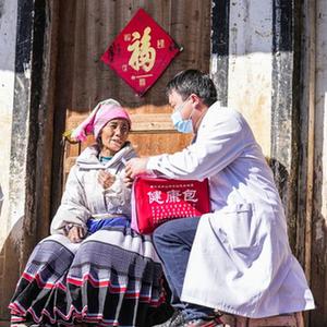 1月6日,醫務(wù)工作者到六盤(pán)水市鐘山區金盆苗族彝族鄉雙塘村村民家中巡診送藥。