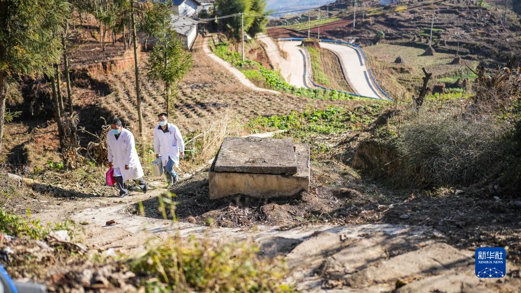 1月6日,醫務(wù)工作者在六盤(pán)水市鐘山區青林苗族彝族鄉海發(fā)村走訪(fǎng)。