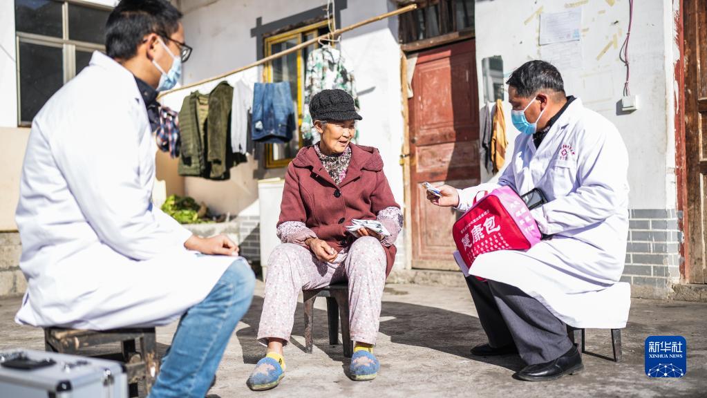 1月6日,醫務(wù)工作者到六盤(pán)水市鐘山區青林苗族彝族鄉海發(fā)村村民家中巡診送藥。