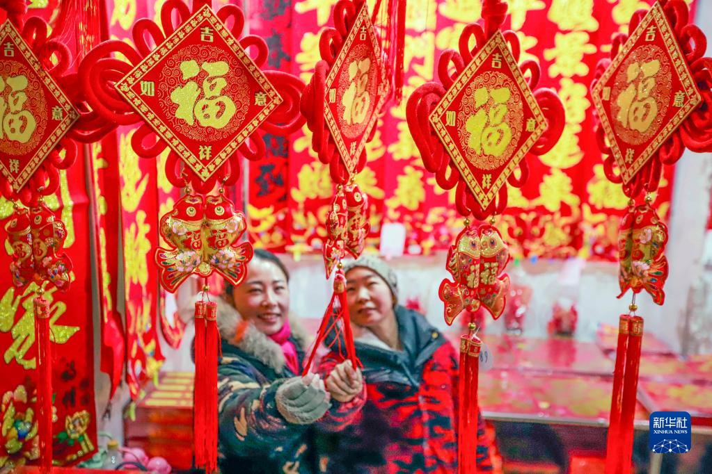 1月6日,市民在河北省玉田縣鴉鴻橋鎮一處市場(chǎng)選購新春掛件。