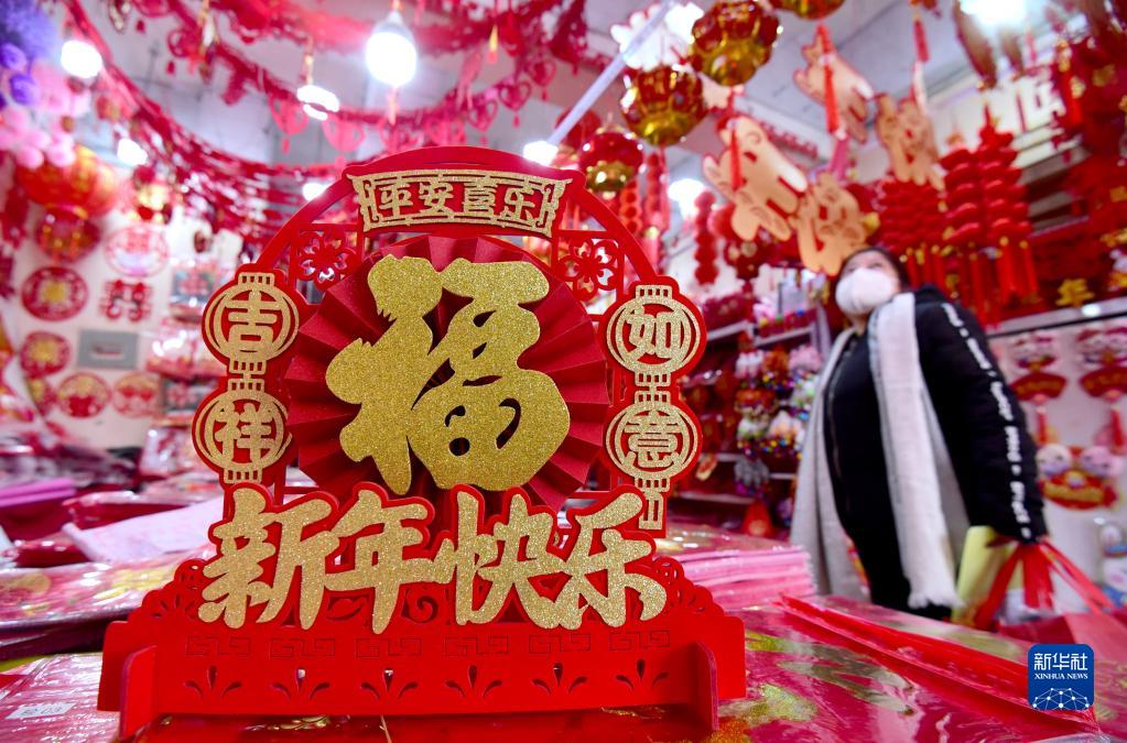 1月6日,市民在河北省邯鄲市一處年貨市場(chǎng)選購春節飾品。