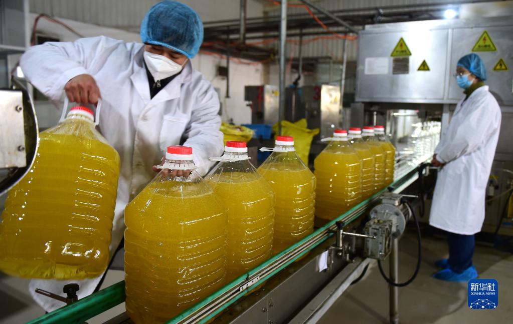 1月6日,滄州市一家糧油企業(yè)的工人在食用油生產(chǎn)線(xiàn)上忙碌。