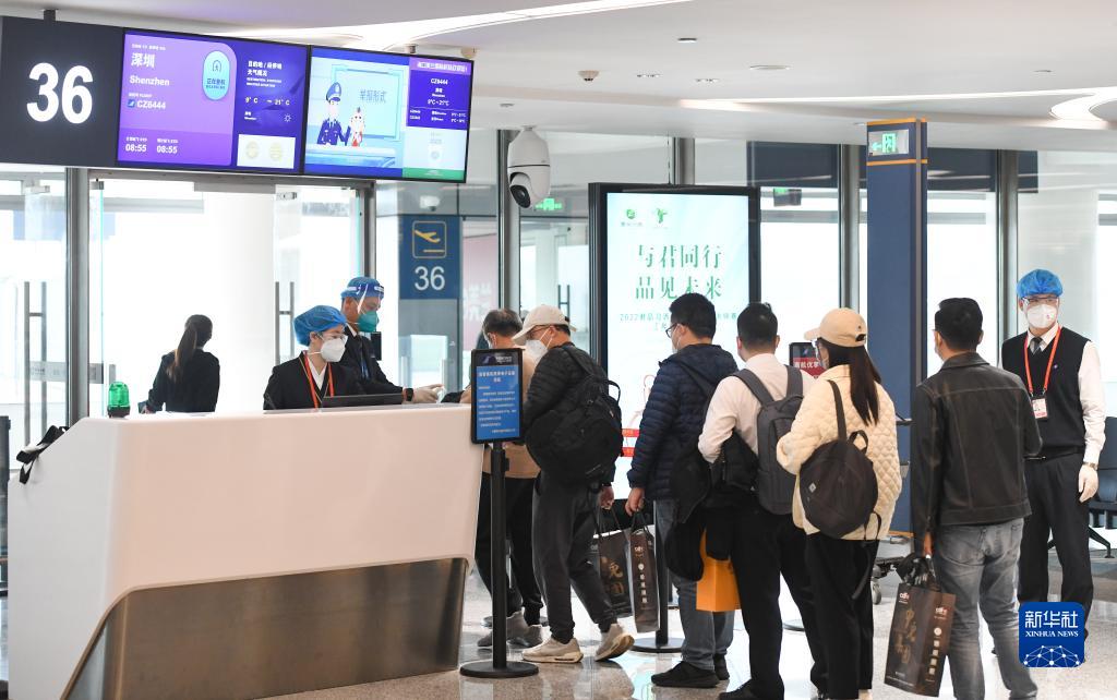 1月7日,在??诿捞m國際機場(chǎng),旅客有序登機。