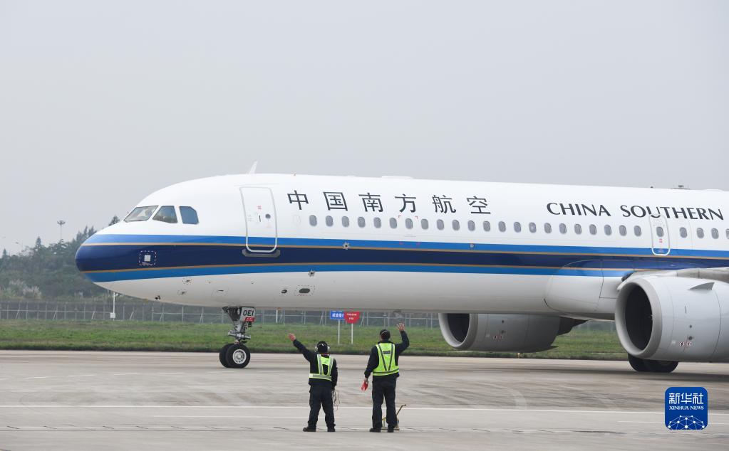 1月7日,在??诿捞m國際機場(chǎng),工作人員揮手送別即將起飛的飛機。