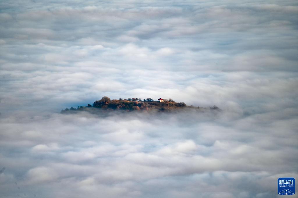 這是1月2日在北馬其頓斯科普里一處山谷拍攝的云霧。
