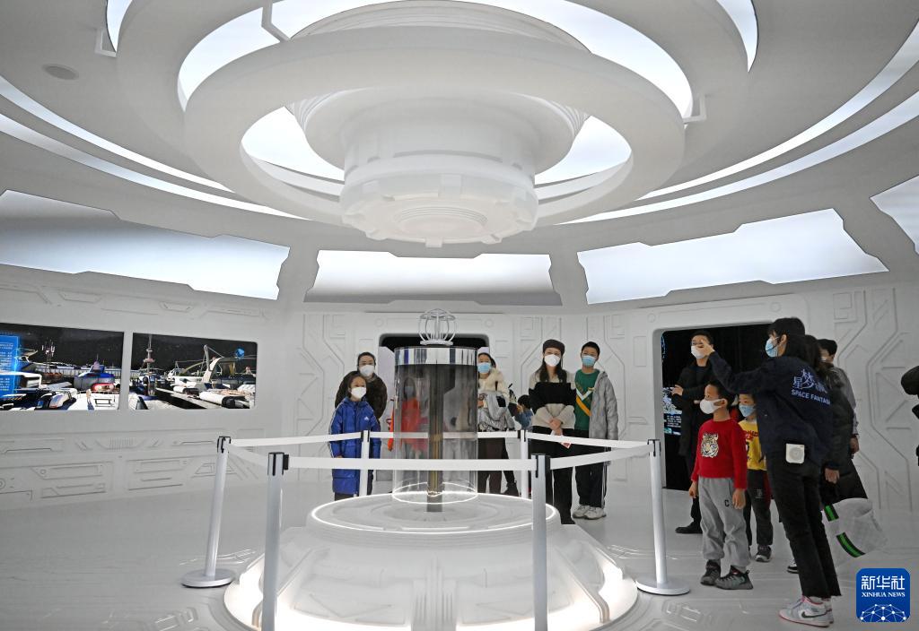 1月7日,觀(guān)眾在國家海洋博物館參觀(guān)“探索·星辰大海──航天科技主題成果巡回展”。